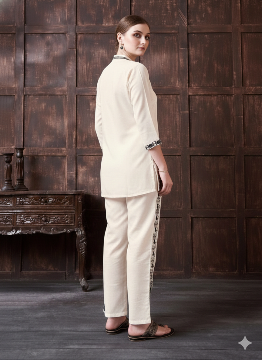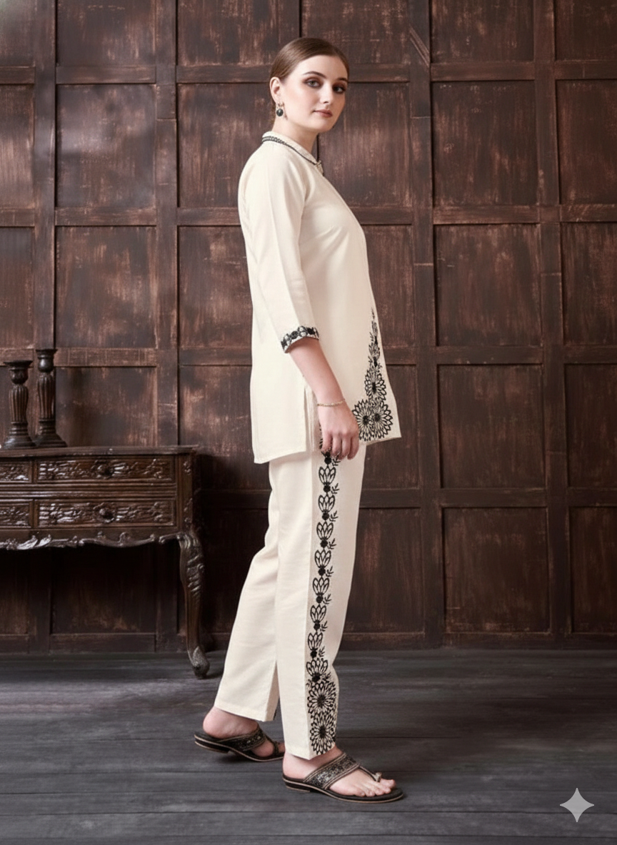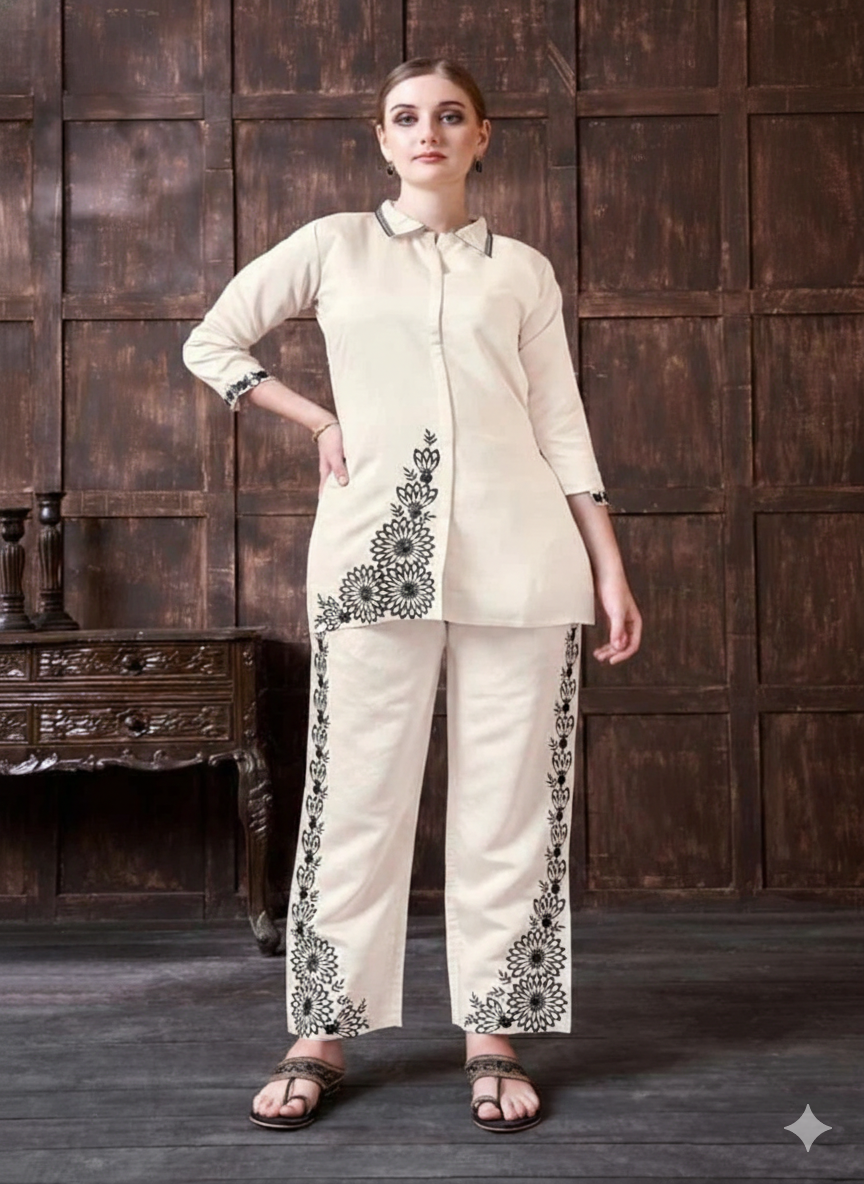 This cord set blends traditional craftsmanship with modern comfort, making it a versatile choice for every woman who loves casual fashion. Pair it with stylish footwear and minimal accessories for a complete look.