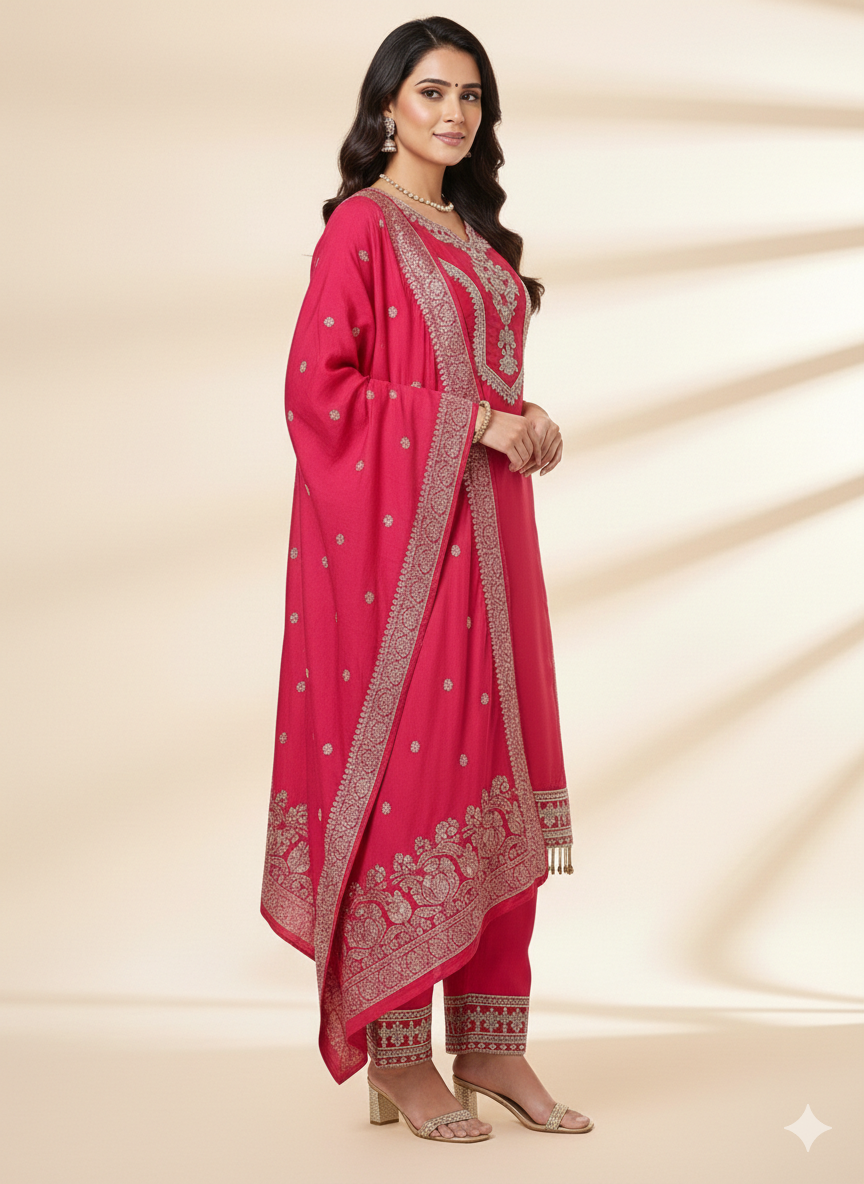 Specification: Roman Glass Embroidered Kurti Set with Dupatta