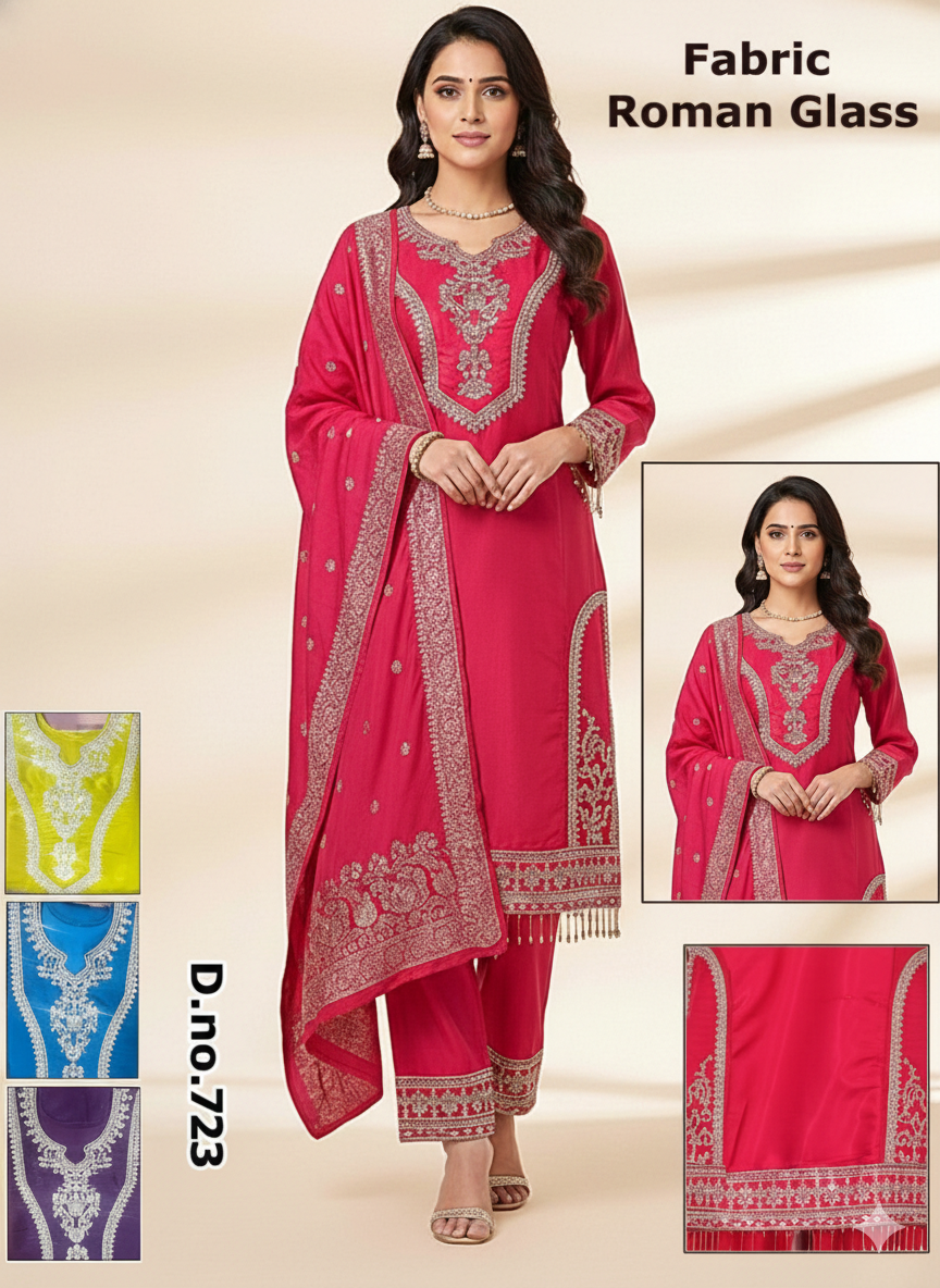 Add timeless elegance to your ethnic wardrobe with this beautifully crafted Roman Glass Embroidered Kurti Set. Designed for comfort and style, this set features intricate embroidery and a graceful silhouette, making it perfect for festive occasions, family gatherings, and casual celebrations.